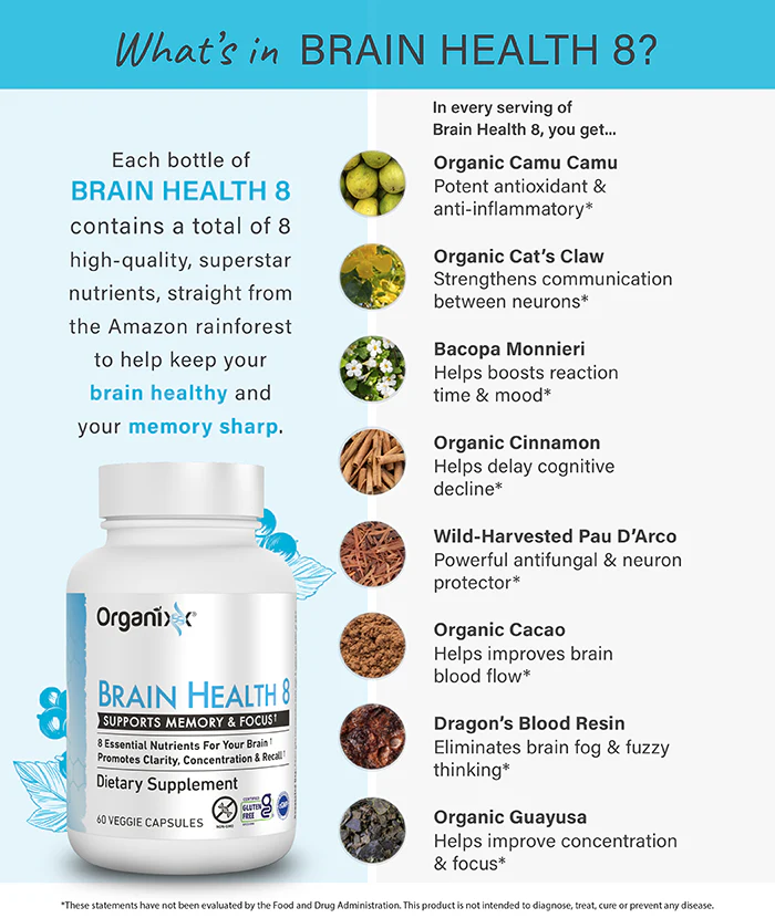 Organixx doesn’t just toss a few herbs together and call it a day. Brain Health 8 is a synergistic blend of eight powerhouse ingredients, all backed by scientific research and chosen for their role in mental clarity and neurological function.