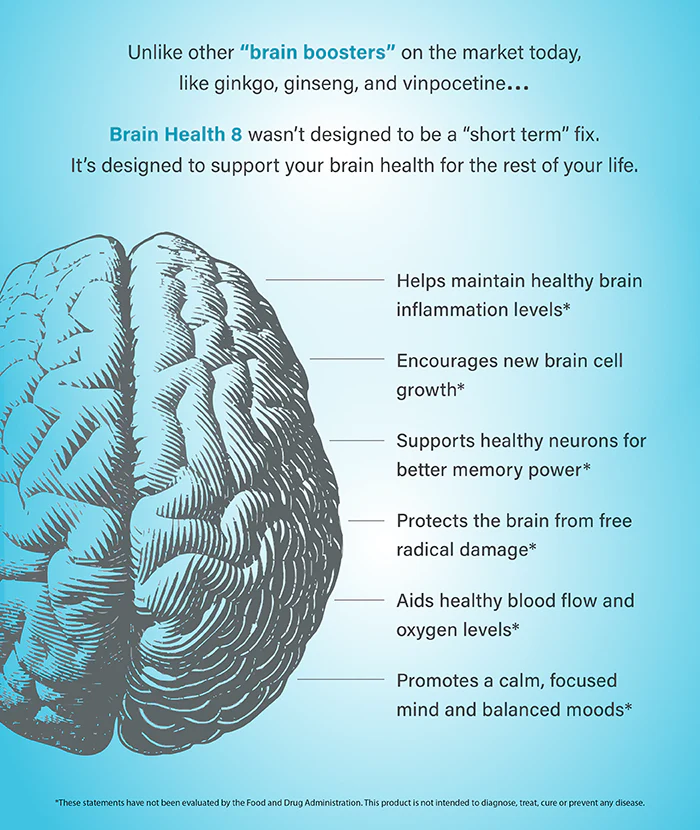 Support memory, focus & daily mental clarity with Brain Health 8 by Organixx. Premium cognitive supplement with 8 natural ingredients. Feel the difference daily. Struggling with mental fog, poor concentration, or memory lapses? Brain Health 8 is a carefully formulated solution by Organixx that’s designed to enhance clarity, sharpen focus, and support long-term cognitive wellness. Whether you’re a student, a busy professional, or simply looking to age gracefully, this brain-boosting formula provides daily support through nature-based science.