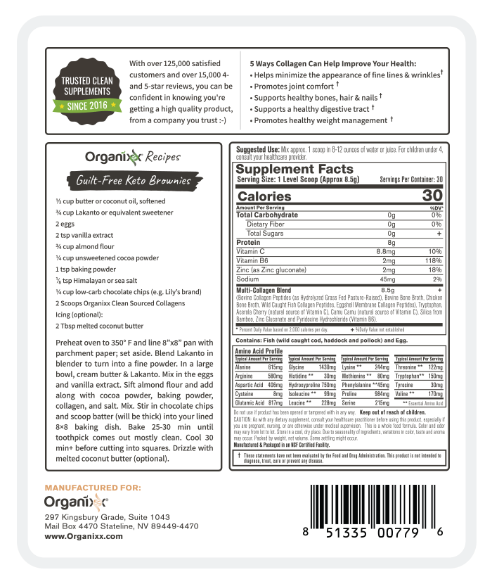 This isn’t your average powder mix. Organixx has carefully selected five collagen types (I, II, III, V, X) sourced from grass-fed, pasture-raised, wild-caught, and organic ingredients. It’s formulated to provide broad-spectrum support for your whole body—not just your skin.