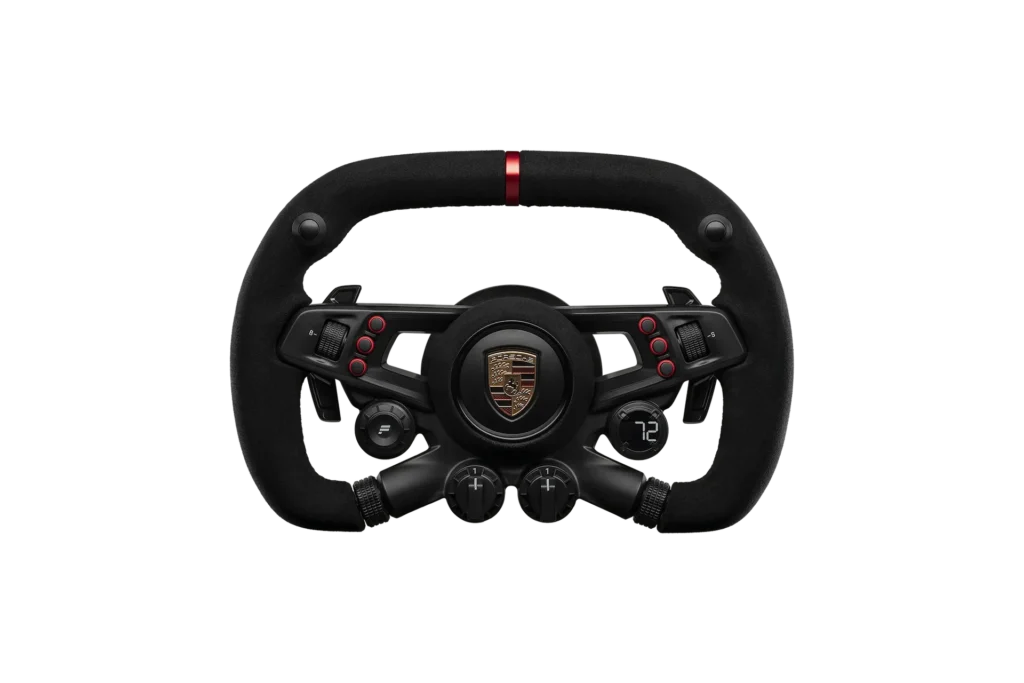 Officially licensed by Porsche and Gran Turismo®, this steering wheel features a futuristic design, durable aluminum frame, and comfortable suede grips. Its layout includes multiple rotary encoders, magnetic paddle shifters, and programmable buttons for perfect control.